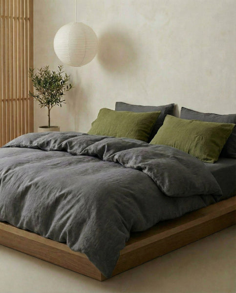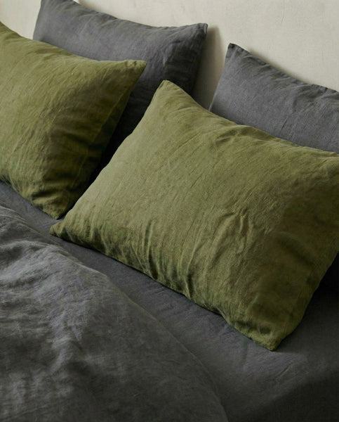 Jachtgroen kussen van zacht linnen. Linnen geeft je slaapkamer een gezellige, comfortabele en gezonde slaapomgeving. Vlas is een natuurlijk en milieuvriendelijk product. Linnen beddengoed is ademend, lichtgewicht, thermoregulerend en vochtregulerend. Linnen biedt het hele jaar door comfort. ENVELOPSLUITING - voor supergemakkelijk gebruik.