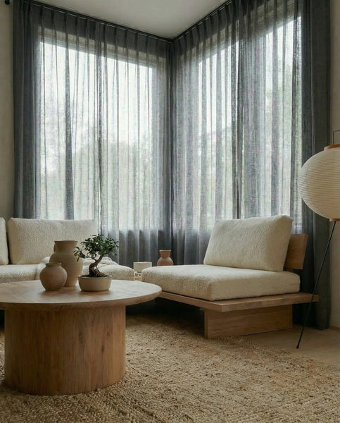 Wij zijn gespecialiseerd in gordijnen van 100% natuurlijk linnen en kunnen elke gewenste maat maken, perfect passend voor uw ramen. Onze gordijnen zijn gemaakt van 100% natuurlijk linnen met een dikke, hoogwaardige weefstructuur.