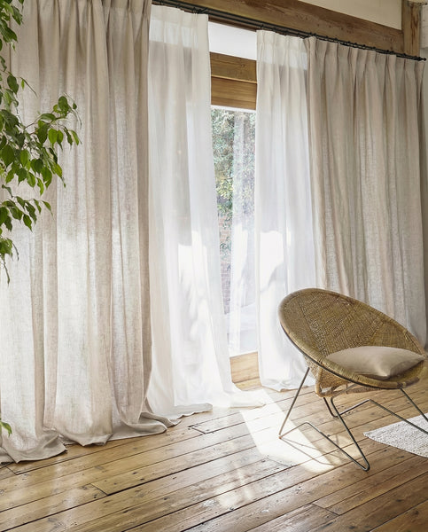 Wij zijn gespecialiseerd in gordijnen van 100% natuurlijk linnen en kunnen elke gewenste maat maken, perfect passend voor uw ramen. Onze gordijnen zijn gemaakt van 100% natuurlijk linnen met een dikke, hoogwaardige weefstructuur.