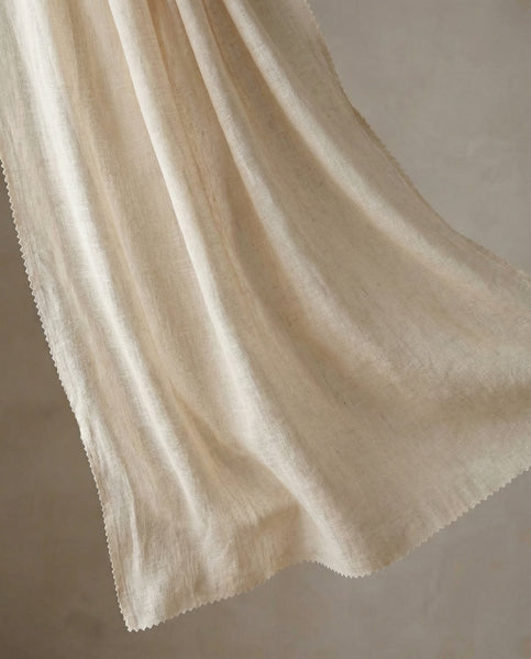 We recommend allowing 2–5 cm extra length to rest on the floor for an even finish, as linen can shrink and expand over time.